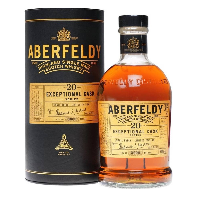 “Aberfeldy exceptional 20y” è un single malt distillato il 27 aprile 1998 e invecchiato per 15y in sei botti ex-bourbon ed infine altri 5 anni in botti ex-sherry. Sono state prodotte complessivamente 3.600 bottiglie.
