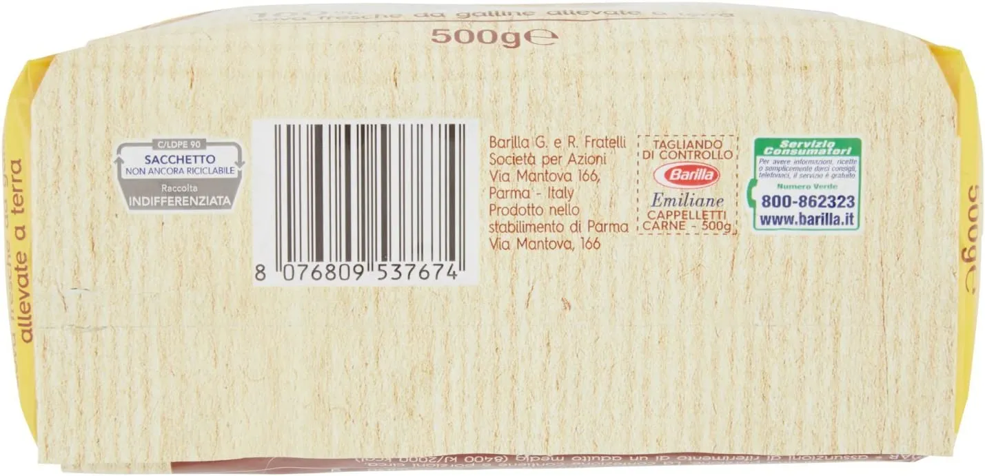 BARILLA CAPPELLETTI ALL’UOVO CON CARNE 500 GR