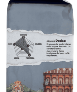 La miscela Decisa è una miscela intensa e robusta: cremosa dal gusto intenso e dal sapore marcato.Un carattere fermo che evoca la tipica tradizione del vero caffè napoletano. Frutto di una pregiata selezione di miscele, create per un espresso di grande corpo. Ricca e cremosa come quella del bar.