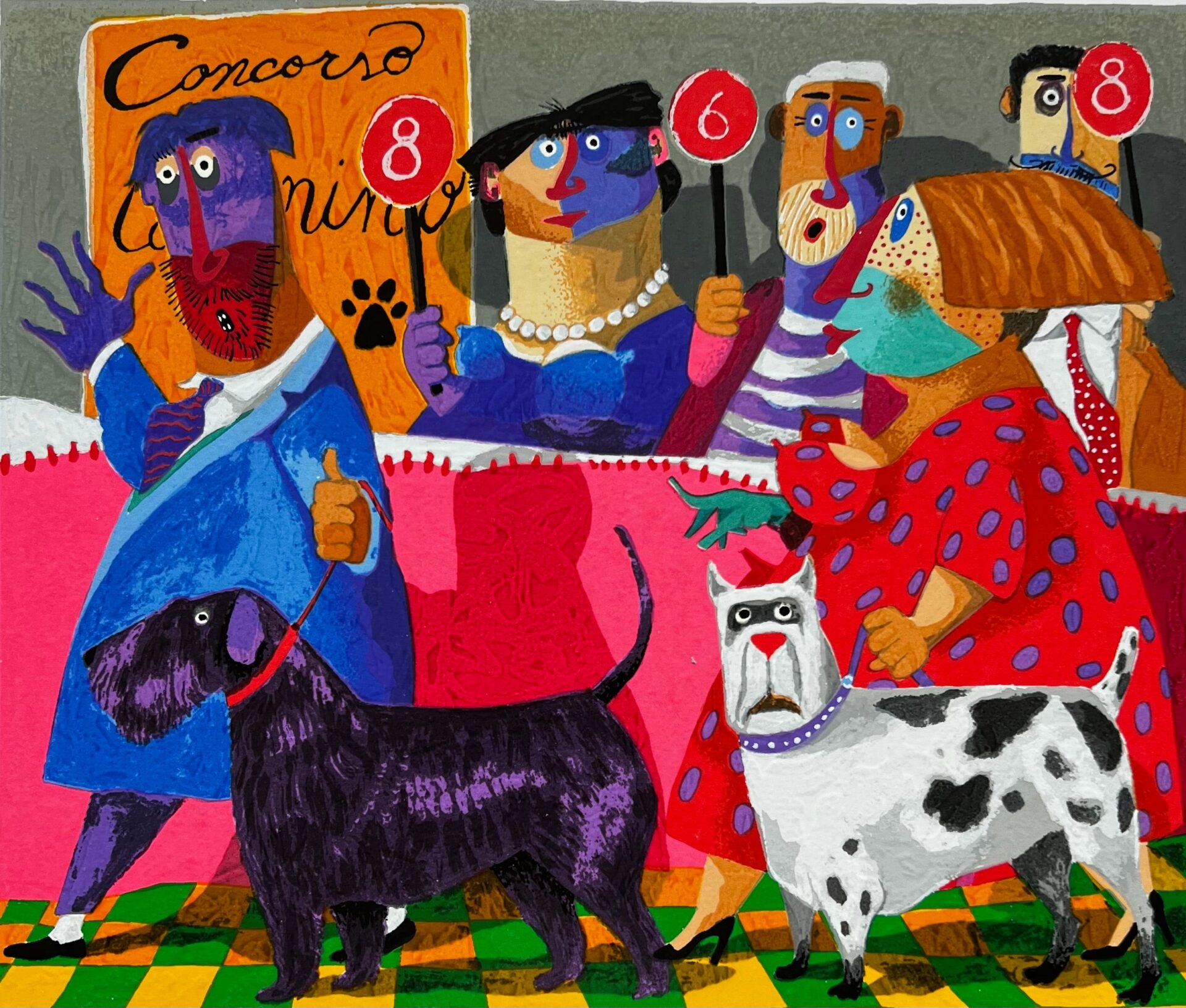 L’artista rappresenta gli eventi di ogni giorno in modo surreale, utilizzando l’ironia che da sempre contraddistingue il suo tratto: giocoso, fumettistico e colorato.