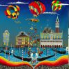 Serigrafia del maestro Bruno Donzelli, la sua è una pittura narrativa, vivacissima anzi scoppiettante, che si nutre di spietate rivisitazioni, più che di citazioni.
