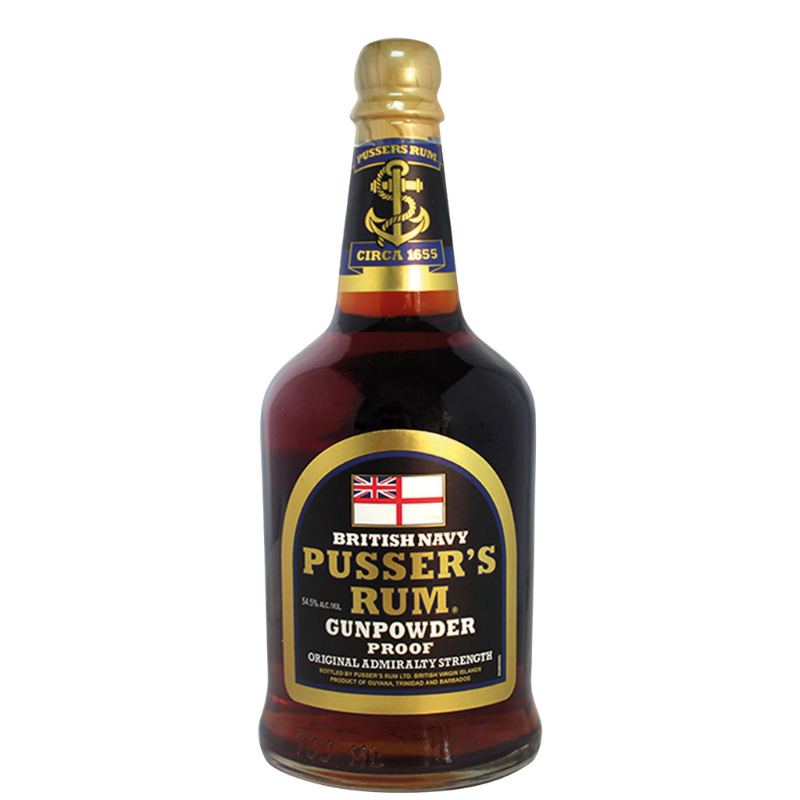 “Pusser’s Gunpowder” è la versione ad alta gradazione del “Pusser’s Rum Blue Label”, ispirato alla ricetta utilizzata l’ultima volta quando la Royal Navy ha interrotto la sua razione giornaliera il 31 luglio 1970. La versione attuale è prodotta da Pusser’s nelle British Virgin Islands ed è realizzata con un blend di rum provenienti da Guyana e Trinidad, senza aggiunta di coloranti o sostante aromatizzanti.